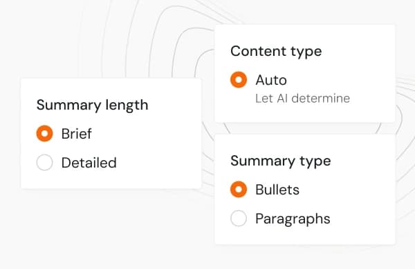 Tailor the summary format to match your needs - whether you need summaries in paragraph or bullet point format, we've got you covered.