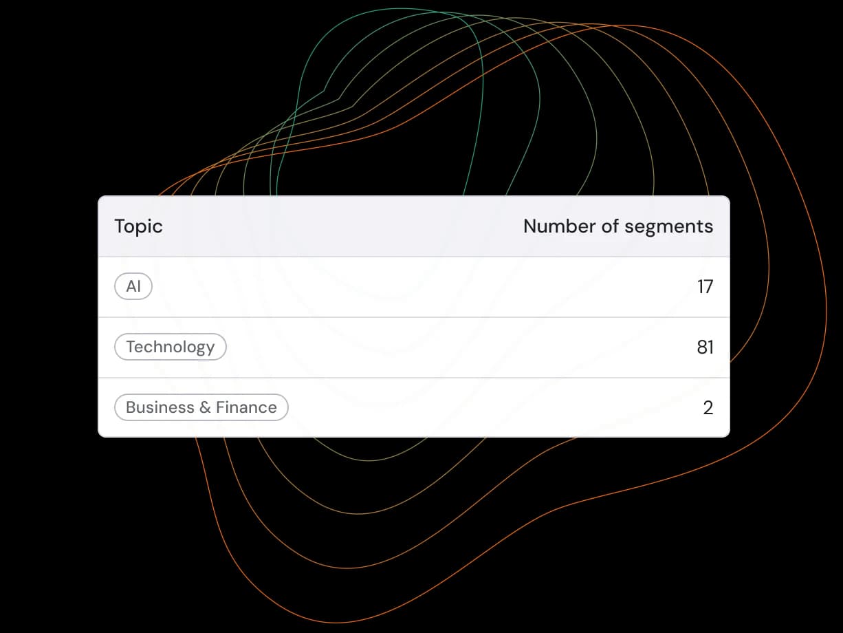 With a single API call, transcribe and identify topics talked about within media, even if the topic isn't mentioned by name.